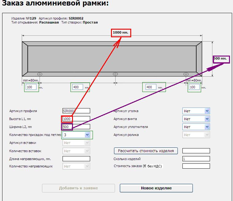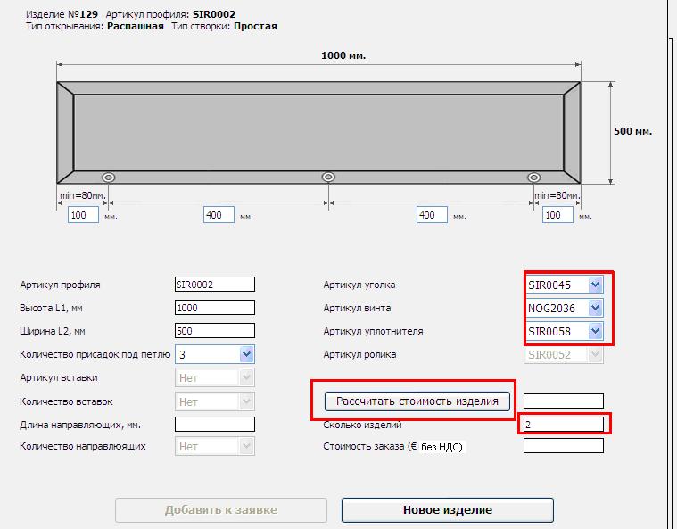 Расчет и добавление изделия в заявку производится действиями аналогичными при заказе простого распашного заказа и описаны ранее.