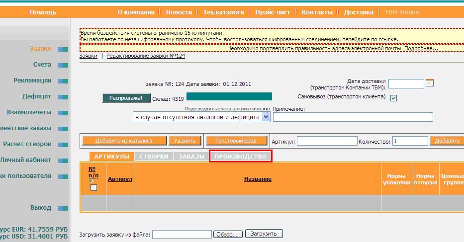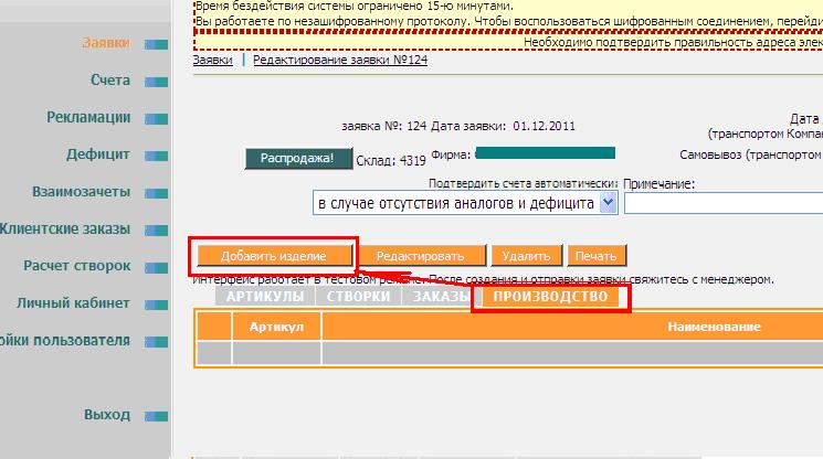 В созданной заявке необходимо перейти на закладку «ПРОИЗВОДСТВО»