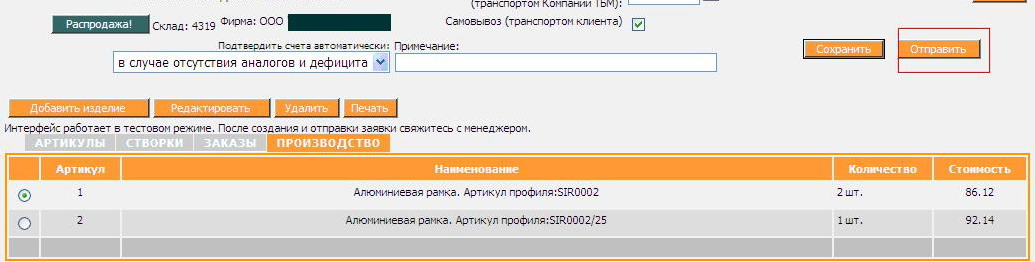 Чтобы добавить изделие в заявку, у этого изделия должна быть рассчитана стоимость, после чего необходимо нажать на кнопку «Добавить к заявке». В результате в заявке появляется строка с названием рассчитанной рамки и стоимостью заказа.