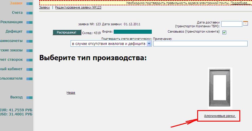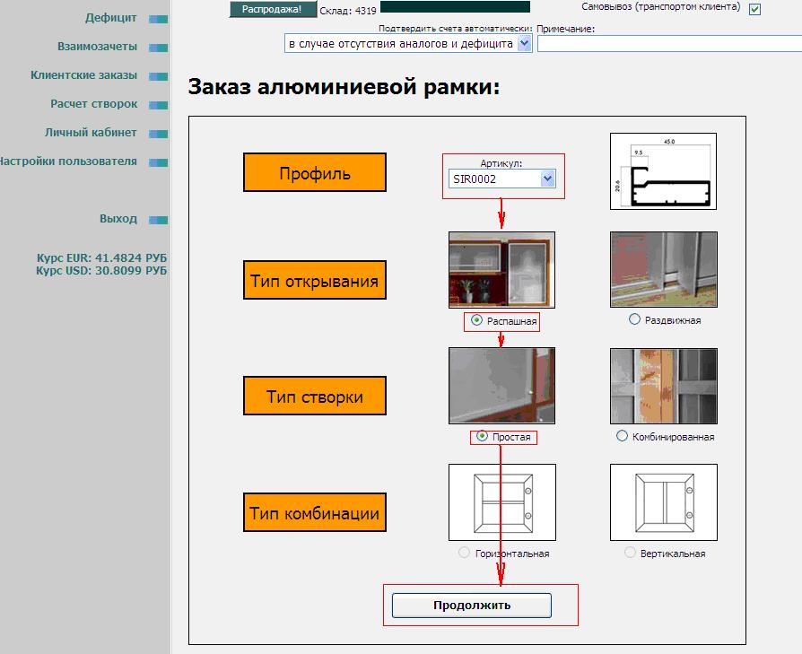Для заказа доступны три типа профиля (FRM2700, FRM2701, FRM2704), из которых возможен заказ на изготовление только простой распашной рамки. Процедура заказа изделия после выбора профиля аналогична заказу рамки из профиля "SIRO".