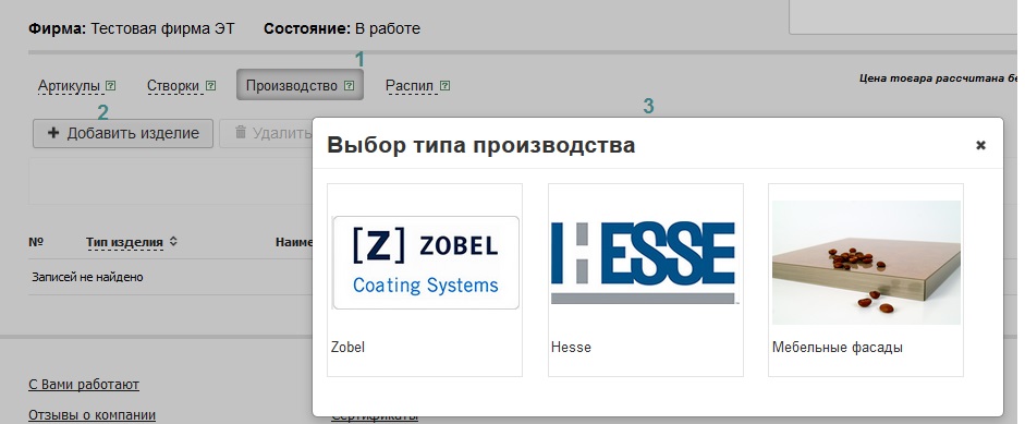 К производственным относятся артикулы Красок Zobel, Hesse и заказ мебельных фасадов.<br> | |||